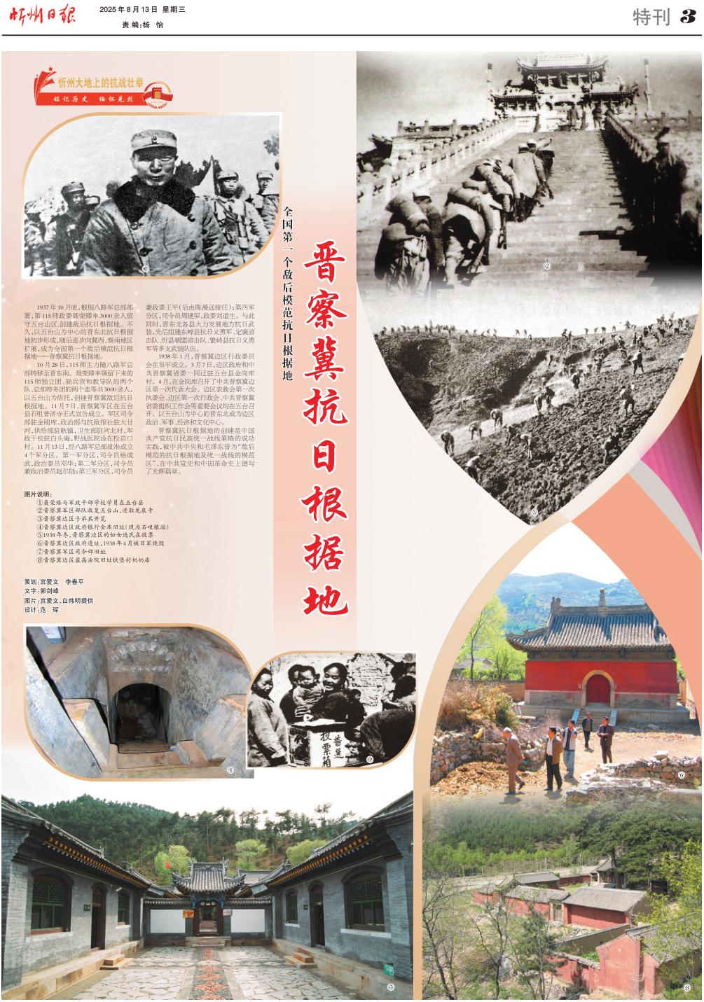 1937年10月底,根據(jù)八路軍總部部署,第115師政委聶榮臻率3000余人留守五臺(tái)山區(qū),創(chuàng)建敵后抗日根據(jù)地。不久,以五臺(tái)山為中心的晉東北抗日根據(jù)地初步形成,隨后逐步向冀西、察南地區(qū)擴(kuò)展,成為全國(guó)第一個(gè)敵后模范抗日根據(jù)地——晉察冀抗日根據(jù)地。 10月28日,115師主力隨八路軍總部轉(zhuǎn)移至?xí)x東南。聶榮臻率領(lǐng)留下來(lái)的115師獨(dú)立團(tuán)、騎兵營(yíng)和教導(dǎo)隊(duì)的兩個(gè)隊(duì)、總部特務(wù)團(tuán)的兩個(gè)連等共3000余人,以五臺(tái)山為依托,創(chuàng)建晉察冀敵后抗日根據(jù)地。11月7日,晉察冀軍區(qū)在五臺(tái)縣石咀普濟(jì)寺正式宣告成立。軍區(qū)司令部駐金剛庫(kù),政治部與抗敵報(bào)社駐大甘河,供給部駐耿鎮(zhèn),衛(wèi)生部駐河北村,軍政干校駐白頭庵,野戰(zhàn)醫(yī)院設(shè)在松巖口村。11月13日,經(jīng)八路軍總部批準(zhǔn)成立4個(gè)軍分區(qū)。第一軍分區(qū),司令員楊成武,政治委員鄧華;第二軍分區(qū),司令員兼政治委員趙爾陸;第三軍分區(qū),司令員兼政委王平(后由陳漫遠(yuǎn)接任);第四軍分區(qū),司令員周建屏,政委劉道生。與此同時(shí),晉東北各縣大力發(fā)展地方抗日武裝,先后組建東崞縣抗日義勇軍、定襄游擊隊(duì)、忻縣犧盟游擊隊(duì)、繁峙縣抗日義勇軍等多支武裝隊(duì)伍。 1938年1月,晉察冀邊區(qū)行政委員會(huì)在阜平成立。3月7日,邊區(qū)政府和中共晉察冀省委一同遷駐五臺(tái)縣金崗庫(kù)村。4月,在金崗庫(kù)召開(kāi)了中共晉察冀邊區(qū)第一次代表大會(huì)。邊區(qū)農(nóng)救會(huì)第一次執(zhí)委會(huì)、邊區(qū)第一次行政會(huì)、中共晉察冀省委組織工作會(huì)等重要會(huì)議均在五臺(tái)召開(kāi)。以五臺(tái)山為中心的晉東北成為邊區(qū)政治、軍事、經(jīng)濟(jì)和文化中心。 晉察冀抗日根據(jù)地的創(chuàng)建是中國(guó)共產(chǎn)黨抗日民族統(tǒng)一戰(zhàn)線策略的成功實(shí)踐,被中共中央和毛澤東譽(yù)為“敵后模范的抗日根據(jù)地及統(tǒng)一戰(zhàn)線的模范區(qū)”,在中共黨史和中國(guó)革命史上譜寫(xiě)了光輝篇章。 策劃:宮愛(ài)文 李春平 文字:郭劍峰 圖片:宮愛(ài)文、白煒明提供 設(shè)計(jì):范琛 (責(zé)任編輯:盧相?。?/span> |
