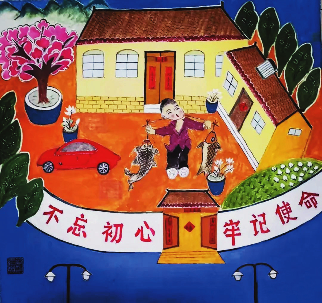她們的作品,取材于農(nóng)村、農(nóng)業(yè)、農(nóng)民生活,或表現(xiàn)美好的生活場景,或反映豐收的喜悅,或體現(xiàn)鄉(xiāng)愁,在表現(xiàn)手法上采用大膽的夸張、變形,巧用艷麗的色彩,人物刻畫細(xì)致入微,內(nèi)心喜悅躍然紙上,富有鮮明的地方特色。綜觀她們的作品,無不展現(xiàn)了社會主義新農(nóng)村在新時代的新變化、新風(fēng)貌,在傳承和弘揚(yáng)代縣文化、引領(lǐng)社會主義精神文明建設(shè)方面做出了出色的嘗試與實踐。