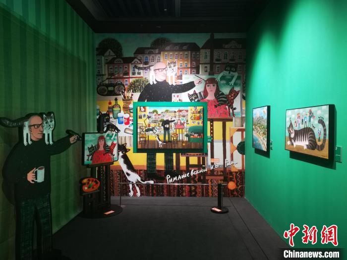 中新網(wǎng) 成都8月29日電(單鵬 程兆)“自從有了城市,屋頂就代替樹梢,成為了喵星人的新王位”。畫面中,一只黑灰色花紋的貓咪翹著二郎腿,悠閑地躺在屋頂,望著天空的飛鳥和白俄羅斯首都明斯克漂亮的建筑和街巷。這是四川博物院新展“尋喵啟事”藝術(shù)展中的一幅作品,充分展示了藝術(shù)家浪漫的想象力。