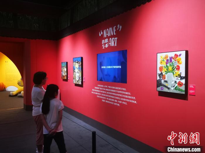 作為稚拙藝術(shù)畫作,此次展出的藝術(shù)畫作不同于學(xué)院派風(fēng)格,呈現(xiàn)出自然天成、直接樸實(shí)的一面。藝術(shù)家在創(chuàng)作時(shí),賦予貓咪一些人類特性,例如在一幅作品中,兩只貓相向而坐,似乎在討論案板上的魚肉是否符合胃口,“因?yàn)橛械呢堖湎矚g吃魚,有的喜歡吃雞肉,所以我們就進(jìn)行了擬人化的解讀。”周詩卉說。