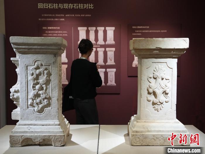 10月13日,“圓明園石柱回歸展暨2023北京公眾考古季”開幕式在北京圓明園博物館舉行。展覽集中展示7件圓明園流失石柱文物,均為漢白玉材質(zhì),推測均來自西洋樓遺址區(qū)。 記者 崔楠 攝