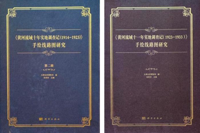 《〈黃河流域十年實(shí)地調(diào)查記(1914—1923)〉手繪線路圖研究》(第二冊(cè))和《〈黃河流域十一年實(shí)地調(diào)查記(1923—1933)〉手繪線路圖研究》封面。 天津自然博物館供圖