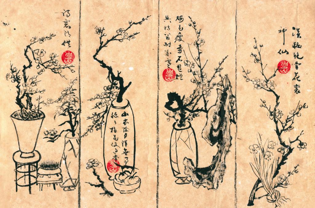 明代文震亨在其《長物志》中有一段評述梅的文字:“幽人花伴,梅實專房。取苔護蘚封,枝稍古者,移植石巖或庭際,最古。另種數(shù)畝,花時坐臥其中,令神骨俱清,綠蕚更勝,紅梅差俗;更有虬枝屈曲,置盆盎中者,極竒。蠟梅磬口為上,荷花次之,九英最下,寒月庭際,亦不可無。”