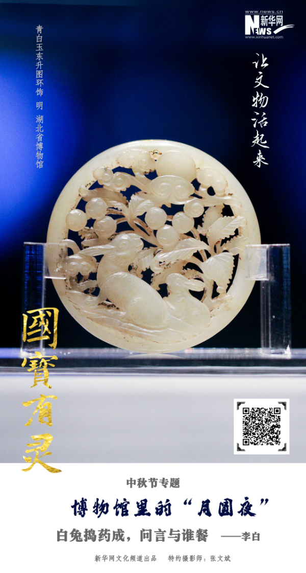 編者按:又是一年中秋節(jié)到,值此佳節(jié)到來(lái)之際,新華網(wǎng)文化頻道“國(guó)寶有靈”文化IP特推出中秋節(jié)專題《博物館里的“月圓夜”》,精選了六件帶有月亮、玉兔等元素的博物館中的文物,并配有與月有關(guān)的詩(shī)句,制作成了海報(bào),希望借由這些富有古老文化內(nèi)涵的國(guó)寶珍品,讓您感受到傳統(tǒng)中秋文化的魅力,為您的節(jié)日增添更多意趣,從中體悟到中華優(yōu)秀傳統(tǒng)文化的精髓所在,有所增益,有所感悟。新華網(wǎng)文化頻道在此祝您闔家團(tuán)圓,幸福安康!