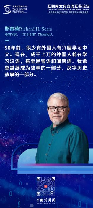 中新網(wǎng)烏鎮(zhèn)11月21日電(林卓瑋)“事物總是在變化,但文化的傳承永遠(yuǎn)需要我們?nèi)ヅ??!?1日,在世界互聯(lián)網(wǎng)大會(huì)烏鎮(zhèn)峰會(huì)互聯(lián)網(wǎng)文化交流互鑒論壇上,被譽(yù)為“漢字叔叔”的美國(guó)漢學(xué)家斯睿德(Richard Sears)從創(chuàng)新傳承漢字的個(gè)人經(jīng)歷出發(fā),講述了一段跨越75年、連接中美的傳奇故事。