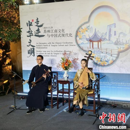 中新網(wǎng)蘇州11月29日電 (記者 鐘升)“月落烏啼霜滿天……”28日夜,蘇州古城華燈初上。以一曲蘇州評彈《楓橋夜泊》為引,“走進(jìn)中華文明——蘇州江南文化與中國式現(xiàn)代化”主題人文交流活動在世界文化遺產(chǎn)獅子林拉開帷幕。