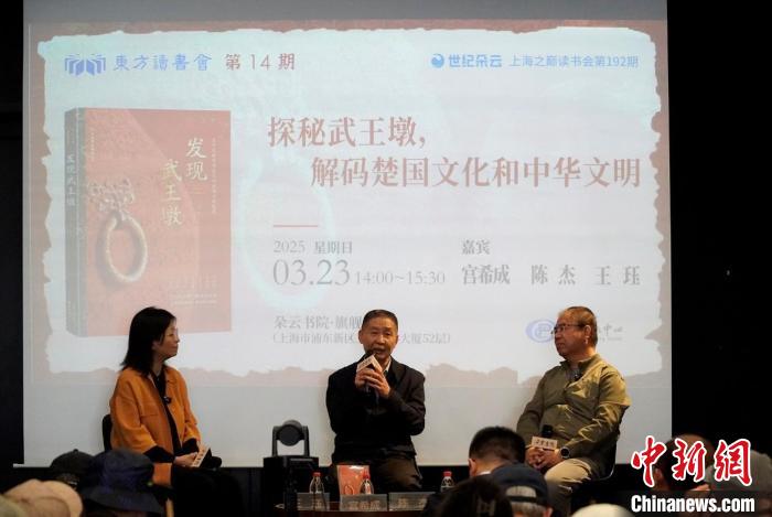 中新網(wǎng)上海3月24日電 (記者 王笈)由東方出版中心主辦的東方讀書會之“探秘武王墩,解碼楚國文化和中華文明”23日在上海舉行,圍繞《發(fā)現(xiàn)武王墩》一書以及武王墩墓的發(fā)掘進展、出土文物等話題展開精彩對談。