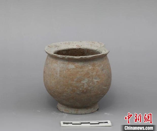圖為廟底溝二期文化房址出土的圈足杯。(山西省考古研究院供圖)
