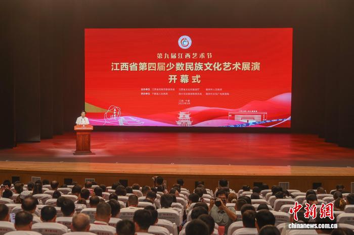 中新網江西于都9月24日電 (劉力鑫)23日晚,江西省第四屆少數民族文化藝術展演在贛州于都縣開幕。國家民委副主任、黨組成員郭衛(wèi)平出席開幕式,江西省政府黨組成員陳小平致辭并宣布展演開幕。
