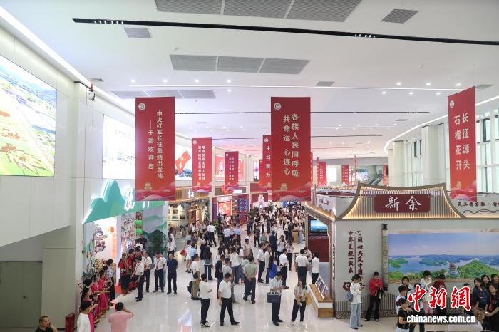 圖為9月23日,江西贛州于都縣,民族題材書畫攝影作品展和鑄牢中華民族共同體意識圖片展現(xiàn)場。劉力鑫 攝