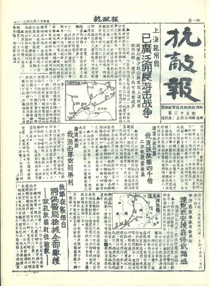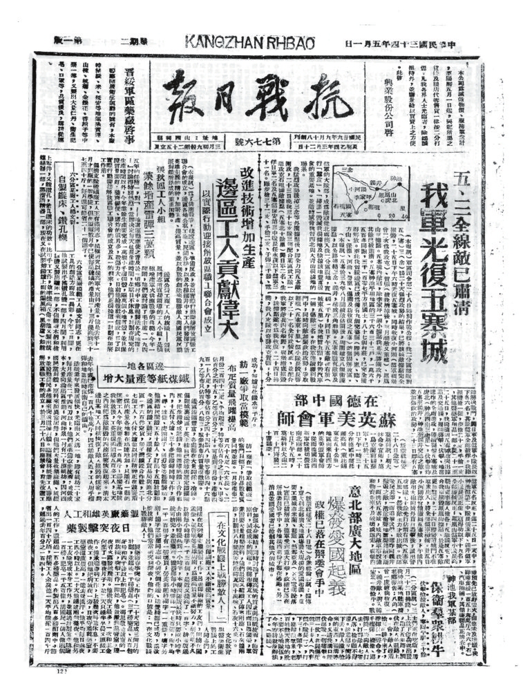 抗戰(zhàn)時(shí)期,忻州既是晉察冀、晉綏兩大根據(jù)地的中心腹地,也是抗戰(zhàn)初期全面抗敵的主戰(zhàn)場(chǎng)。忻州以其地理咽喉、戰(zhàn)役要沖、根據(jù)地核心和人民戰(zhàn)爭(zhēng)典范的多重角色,成為抗日戰(zhàn)爭(zhēng)中抵御日軍侵略、堅(jiān)持?jǐn)澈蠖窢?zhēng)的戰(zhàn)略支點(diǎn)之一。其歷史貢獻(xiàn)不僅體現(xiàn)在軍事上,更彰顯了中華民族不屈不撓的抗戰(zhàn)精神。隨著八路軍平型關(guān)大捷、雁門關(guān)伏擊戰(zhàn)、夜襲陽明堡飛機(jī)場(chǎng)等戰(zhàn)役勝利,1937年11月7日晉察冀軍區(qū)在五臺(tái)成立。12月11日,《抗敵報(bào)》誕生。1940年11月,《抗敵報(bào)》改名為《晉察冀日?qǐng)?bào)》,鄧拓任報(bào)社主任。《抗敵報(bào)》最初在五臺(tái)石嘴村石印,后改鉛印。1938年1月,晉察冀邊區(qū)行政委員會(huì)在河北阜平成立,兩月后,邊區(qū)行政委員會(huì)遷駐五臺(tái)射虎川臺(tái)麓寺,報(bào)社、印刷廠分駐?;垅?、蛤蟆石古佛寺。1940年9月18日,晉綏分局機(jī)關(guān)報(bào)《抗戰(zhàn)日?qǐng)?bào)》,伴隨著隆隆炮火聲,在距離忻州不遠(yuǎn)的興縣艱難創(chuàng)刊。自此,那些戰(zhàn)地記者、通訊員甚或普通民眾,有名的,無名的,以個(gè)人名義,以集體名義,在極其艱苦的條件下,用滾燙筆尖秉筆直書,為我們珍存了那些發(fā)生在忻州大地上前仆后繼、可歌可泣的抗戰(zhàn)故事,也讓今天的人們一旦捧讀就會(huì)熱血沸騰。