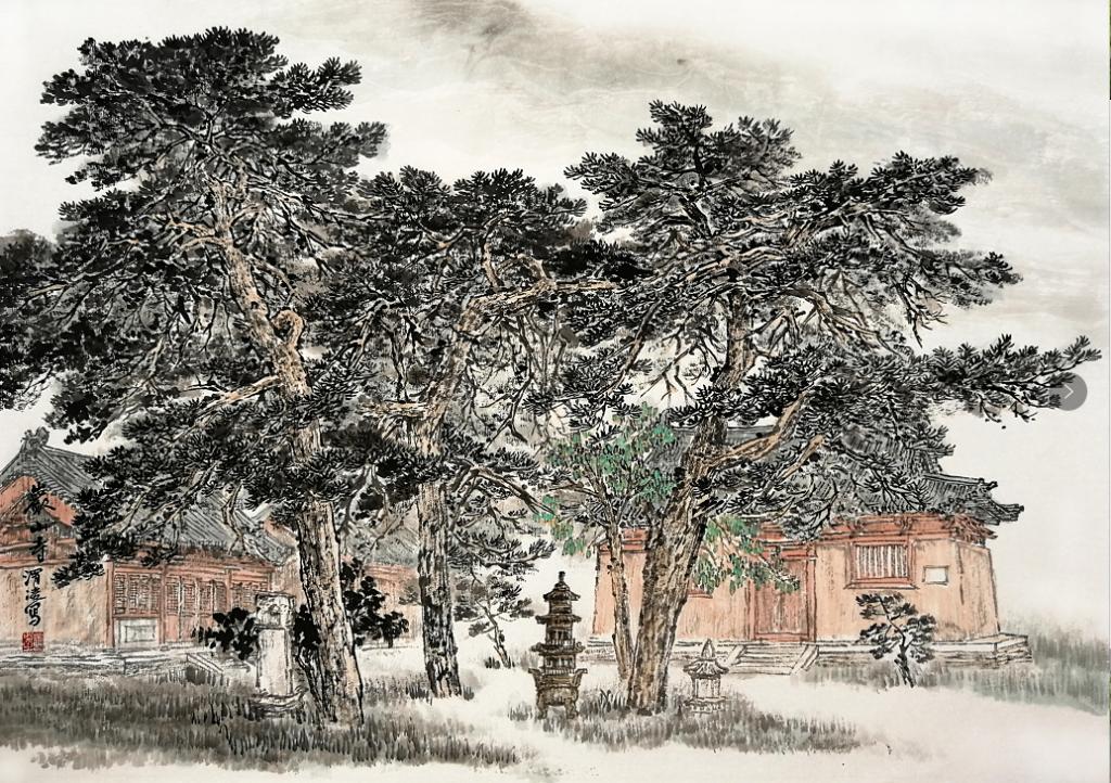 后來因為他繪畫上取得的成績,調(diào)到了忻府區(qū)文聯(lián)工作。條件好了,畫的畫更多了,畫風依然樸實親切,給人一種視覺的舒適感。這幾年他是在一路前進的,他筆下的線條清朗有力,墨色變化也更加豐富,畫中有了渾厚華滋的氣象。細看他的畫,樸實中蘊藏著精巧,拙拙的行筆中偶露鋒厲,給畫面帶來活力生機。我們在一起寫生,他在畫面經(jīng)營上、構圖處理上總能給人意想不到的驚喜。畫面虛實處理把握的恰到好處,又能準確表現(xiàn)自然原貌的神采。于不知不覺中將自己的審美和情感融入了畫中,完成的寫生總比自然景色更加生動、更吸引人的目光,但又讓你看不出他是在哪里做了手腳。