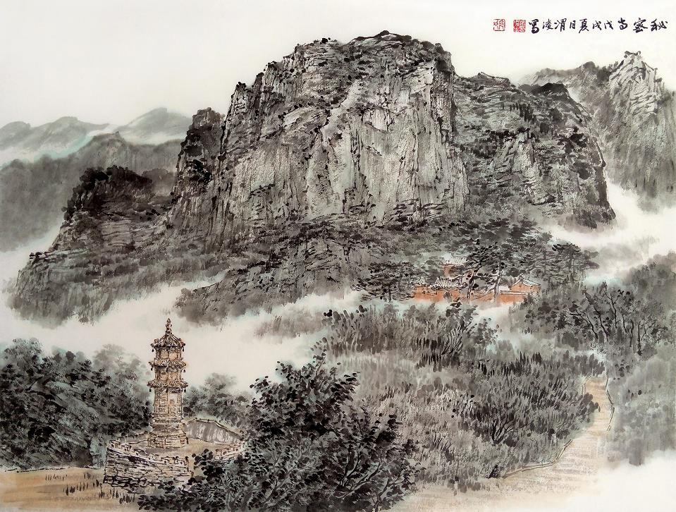 認識殷渭凌,是先認識他的畫,前幾年在一次省里畫展上看到了一幅山水畫,淳樸、厚重,樸實的親切、厚重的實在,完全沒有近幾年流行的風氣,也沒有長期臨摹傳統(tǒng)繪畫形成的習氣。正如一個從鄉(xiāng)村走出來的小伙,健康、有朝氣、單純、樸實、憨厚、怯生生的站在那里,給我留下了很深的印象。因為忻州地區(qū)畫山水的人不多,很快就認識了渭凌。果然人如其畫,淳樸、厚道、話不多、為人真誠,是個畫畫肯下功夫的小伙子。后來省美協(xié)山水畫藝委會的活動都有他的身影,畫越畫越多,畫的也越來越好,但是畫面中那種親切、樸實、厚重、蒼茫的特點卻一點兒也沒有丟失。濃濃的泥土氣息生發(fā)于筆墨中,散發(fā)在畫面里,在展廳里感染著每一個觀眾。晉西北風情在他的營造下得到了充分的體現(xiàn)。