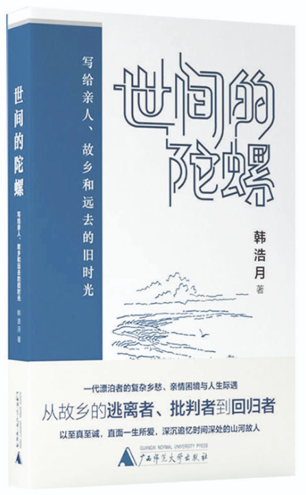 人不管走得多遠(yuǎn),最終都要和故鄉(xiāng)的人、故鄉(xiāng)的山河、故鄉(xiāng)的那段歲月握手言和。在《世間的陀螺》這本散文集里,韓浩月把故人、故鄉(xiāng)、故事一一請(qǐng)進(jìn)書(shū)中、銘刻心間,讓其成為自己生命中的光亮,照耀未來(lái)的道路。如他自己所說(shuō)的,“從一個(gè)出走者和背叛者變成一個(gè)回歸者”,回歸并不單指肉體層面,把故鄉(xiāng)一直裝在心里的人便是永恒的回歸者。無(wú)論親人是生是死,無(wú)論故鄉(xiāng)是新是舊,一直對(duì)其不離不棄的人,才是故鄉(xiāng)大地懷抱里永遠(yuǎn)長(zhǎng)不大的孩子——想哭就哭,想笑就笑,想跳就跳,想回來(lái)就回來(lái)。(張家鴻)