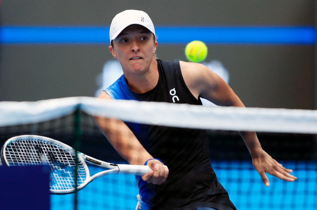 10月7日,斯維亞特克在比賽中回球。新華社記者 雒圓 攝