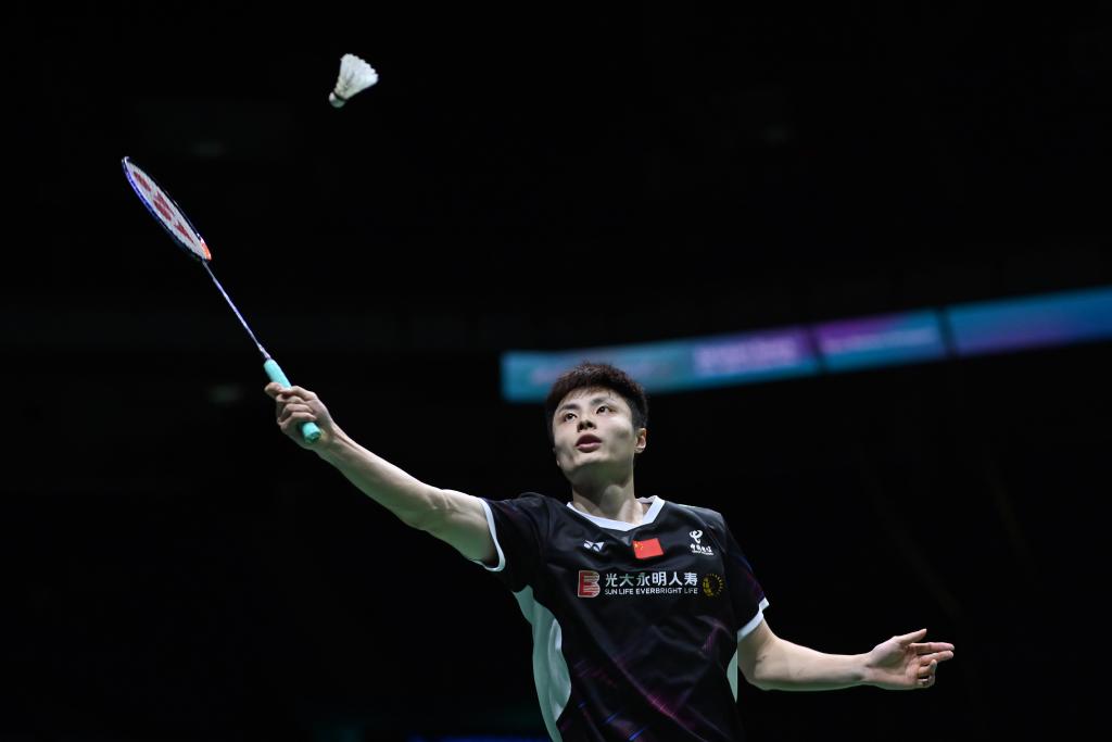 1月11日,石宇奇在比賽中回球。新華社發(fā)(張紋綜攝) 中國(guó)隊(duì)四名男單選手在全部晉級(jí)十六強(qiáng)后,當(dāng)日也有一人在國(guó)羽隊(duì)內(nèi)較量中折戟。經(jīng)過(guò)80多分鐘的鏖戰(zhàn),李詩(shī)灃在首局失利的情況下連扳兩局,最終以13:21、21:16、21:18戰(zhàn)勝隊(duì)友翁泓陽(yáng),成功晉級(jí)。石宇奇直落兩局輕松擊敗法國(guó)選手大波波夫,陸光祖以23:21、25:23險(xiǎn)勝印度尼西亞名將金廷。