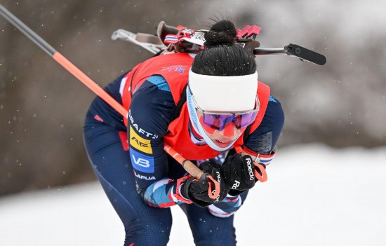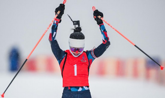 20日,河北隊選手褚源蒙克服降溫降雪天氣的影響,憑借全場射擊零脫靶的出色表現(xiàn),奪得第十四屆全國冬季運動會冬季兩項公開組女子12.5公里集體出發(fā)項目金牌。