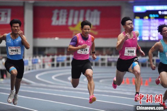 中新網(wǎng)成都2月27日電 (記者 賀劭清)27日,中國短跑名將蘇炳添在成都市郫都區(qū)舉行的2024年全國室內(nèi)田徑大獎賽(第1站)迎來賽季首秀。當天下午舉行的男子60米決賽中,蘇炳添跑出6秒66,摘得銀牌。和他同為廣東隊的陳冠鋒跑出6秒65奪冠。