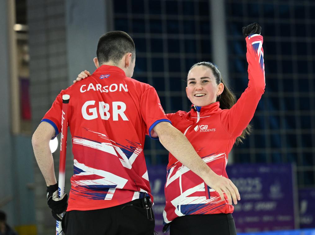 冰壺混雙項(xiàng)目是本屆大冬會首次設(shè)立的比賽項(xiàng)目,吸引了來自8個(gè)代表團(tuán)的隊(duì)伍參賽。決賽在英國隊(duì)和德國隊(duì)之間展開。英國組合芒羅和卡森表現(xiàn)出色,以10:8戰(zhàn)勝德國隊(duì),奪得歷史首金。