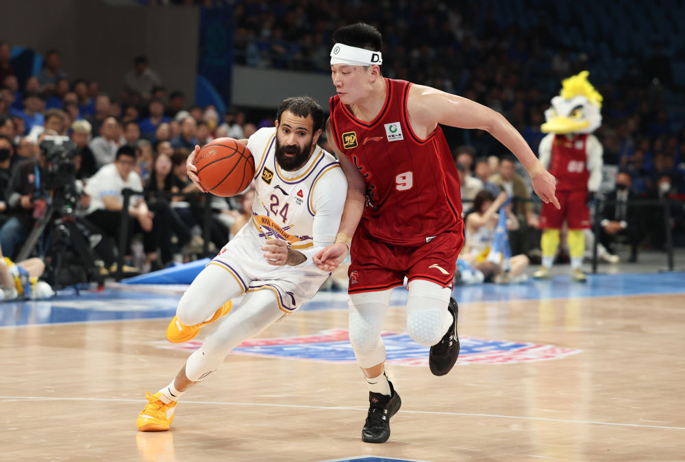 4月14日,北控隊球員里勒(左)在比賽中突破。新華社記者 王楷焱 攝