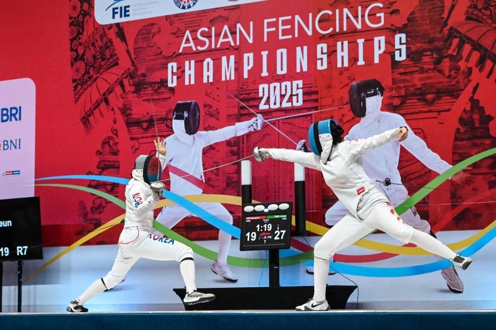 新華社雅加達(dá)6月22日電 2025亞洲擊劍錦標(biāo)賽22日在印度尼西亞結(jié)束最后一個(gè)比賽日的爭(zhēng)奪,中國(guó)女子重劍隊(duì)力克韓國(guó)隊(duì)奪得女重團(tuán)體冠軍。中國(guó)隊(duì)最終以2金5銀4銅的成績(jī)結(jié)束本次賽事。