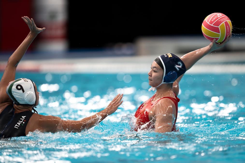 中國隊在交叉賽中遭遇世界排名第七的意大利隊,雙方一開場就開始在水中“肉搏”,比拼防守。第一節(jié)中國隊以0:2落后。次節(jié)中國隊逐漸找到進攻節(jié)奏,由王詩蘊率先破門,此后雙方你來我往,交替得分。張育綿、周尚、張玘鑠的進球幫助中國隊緊咬比分,半場結束中國隊5:6落后。