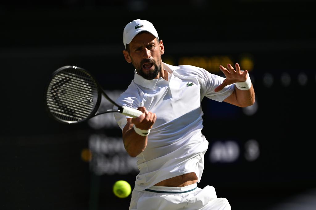 7月11日,焦科維奇在比賽中回球。當(dāng)日,在英國倫敦舉行的2025溫布爾登網(wǎng)球公開賽男子單打半決賽中,意大利選手辛納3比0戰(zhàn)勝塞爾維亞選手焦科維奇,晉級(jí)決賽。新華社記者 趙丁喆 攝