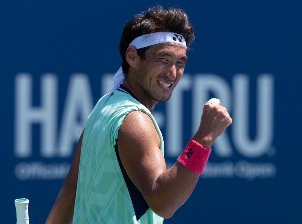 7月28日,中國選手布云朝克特在比賽后慶祝勝利。當(dāng)日,在多倫多舉行的2025年加拿大國家銀行網(wǎng)球公開賽男單首輪比賽中,中國選手布云朝克特2比0戰(zhàn)勝捷克選手科普里瓦,晉級(jí)第二輪。新華社發(fā)(鄒崢攝)