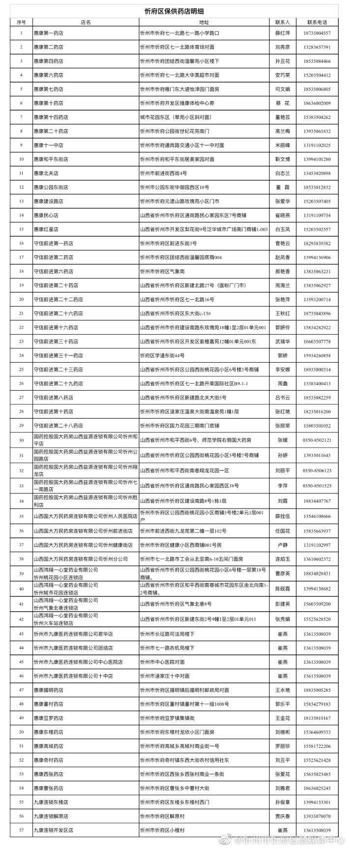 忻府區(qū)保供藥店聯系方式