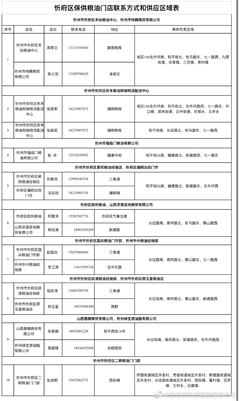 忻府區(qū)保供糧油門店聯系方式