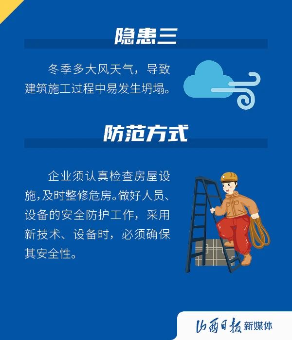 進(jìn)入冬季,氣溫下降,晝夜溫差大,冷暖變化不規(guī)律,一些事故發(fā)生概率會因?yàn)榧竟?jié)性因素而升高,影響企業(yè)的安全生產(chǎn),下面這些隱患需注意。
