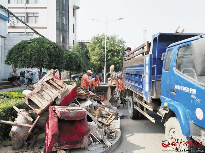 8月2日,忻州城區(qū)環(huán)衛(wèi)工人正在清運垃圾。今年是第六屆創(chuàng)建全國文明城市評選決勝之年。在市創(chuàng)建全國文明城市總指揮部的統(tǒng)一協(xié)調(diào)指揮下,結(jié)合當前正在開展的城區(qū)“兩下兩進兩拆雙修一提升”專項整治行動,近日,各單位和居民小區(qū)清潔環(huán)境,助力創(chuàng)建全國文明城市。市市容環(huán)境衛(wèi)生管理處組織環(huán)衛(wèi)工人和車輛對指定堆放的垃圾進行了集中清運。 張劍雄 攝