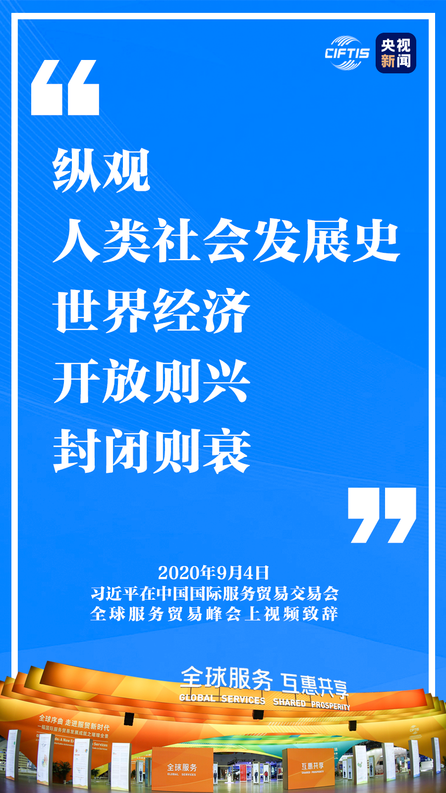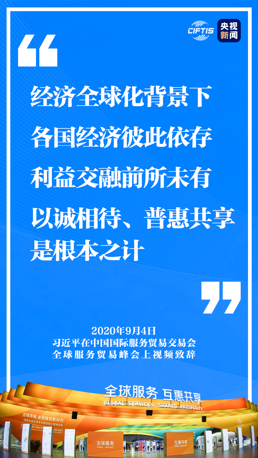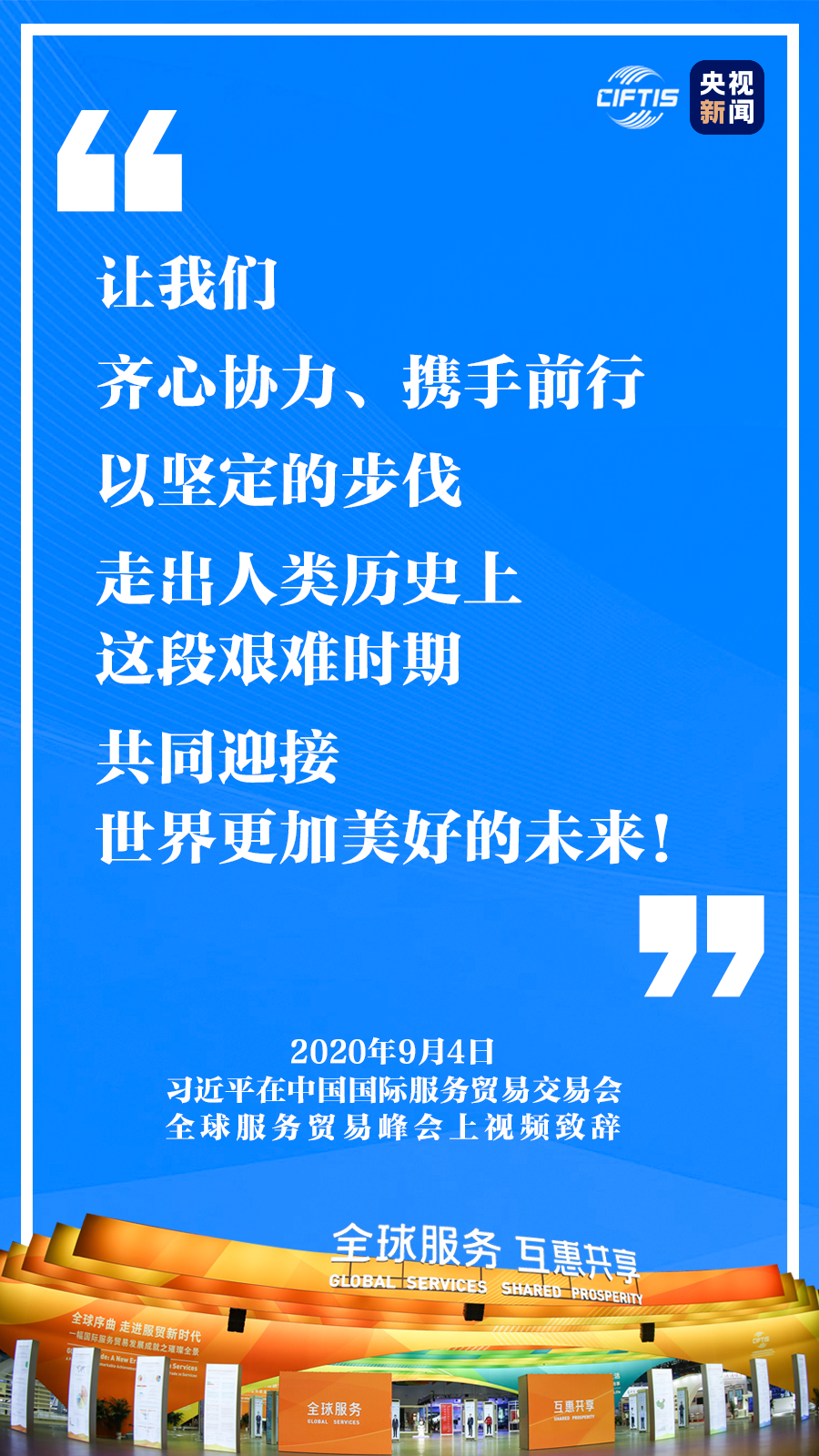 中國克服重重困難,舉辦這樣一場重大國際經(jīng)貿(mào)活動,就是要同大家攜手努力、共克時艱,共同促進全球服務(wù)貿(mào)易發(fā)展繁榮,推動世界經(jīng)濟盡快復(fù)蘇。