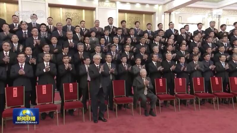 人民大會(huì)堂北大廳氣氛喜慶熱烈。上午10時(shí)許,習(xí)近平等黨和國(guó)家領(lǐng)導(dǎo)同志步入會(huì)場(chǎng),向參研參試人員代表?yè)]手致意,全場(chǎng)響起經(jīng)久不息的掌聲。習(xí)近平同孫家棟、欒恩杰等親切交流,并同大家合影留念。