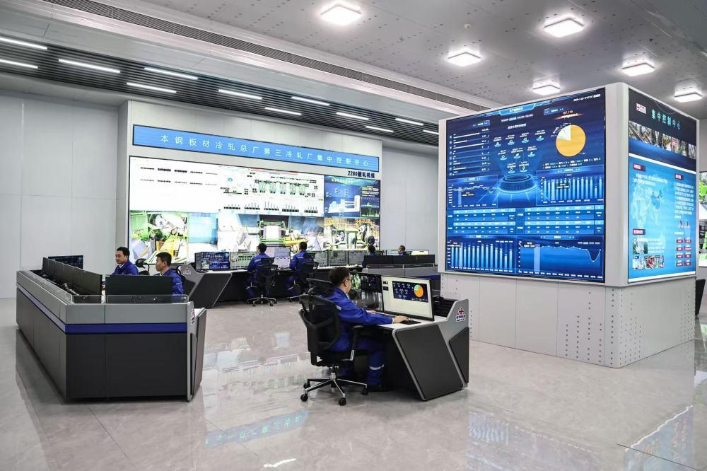 △工作人員在鞍鋼集團(tuán)所屬的本鋼板材冷軋總廠第三冷軋廠集控中心監(jiān)控設(shè)備運(yùn)行情況。