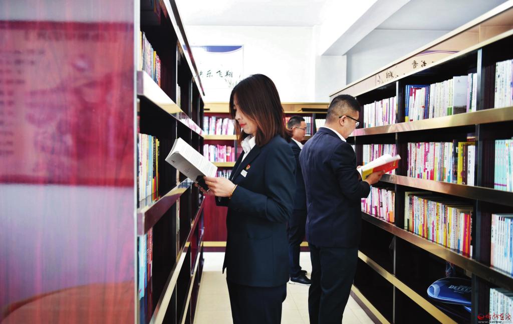 近日,五臺農商行舉辦讀書活動。設施齊全、安靜溫馨、滿溢書香的閱覽室,為大家營造了一個良好的讀書氛圍。愛讀書、讀好書、善讀書已成為員工們的一種生活常態(tài)。(閆澤峰 攝)