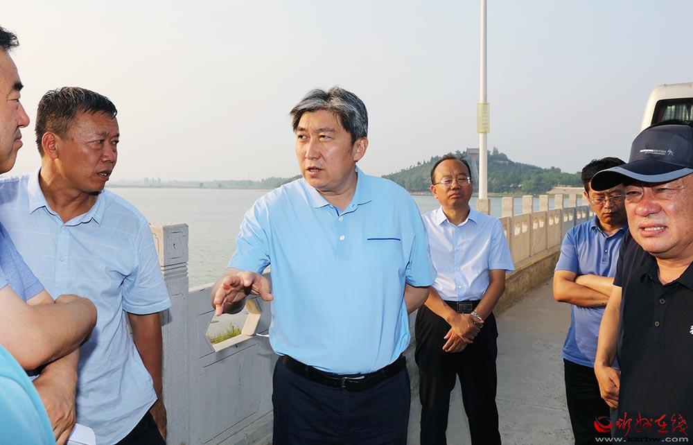 本報(bào)訊 (記者任逢春)7月21日,市長(zhǎng)、市總河長(zhǎng)、滹沱河河長(zhǎng)朱曉東深入原平、忻府實(shí)地巡河,檢查河道、水庫(kù)防汛備勤、物資儲(chǔ)備和應(yīng)急準(zhǔn)備等落實(shí)情況。副市長(zhǎng)裴峰、市政府秘書(shū)長(zhǎng)郭寶厚參加。