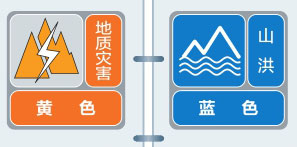 | 注意 地質(zhì)災(zāi)害預(yù)警 黃色 山洪災(zāi)害預(yù)警 藍色 |