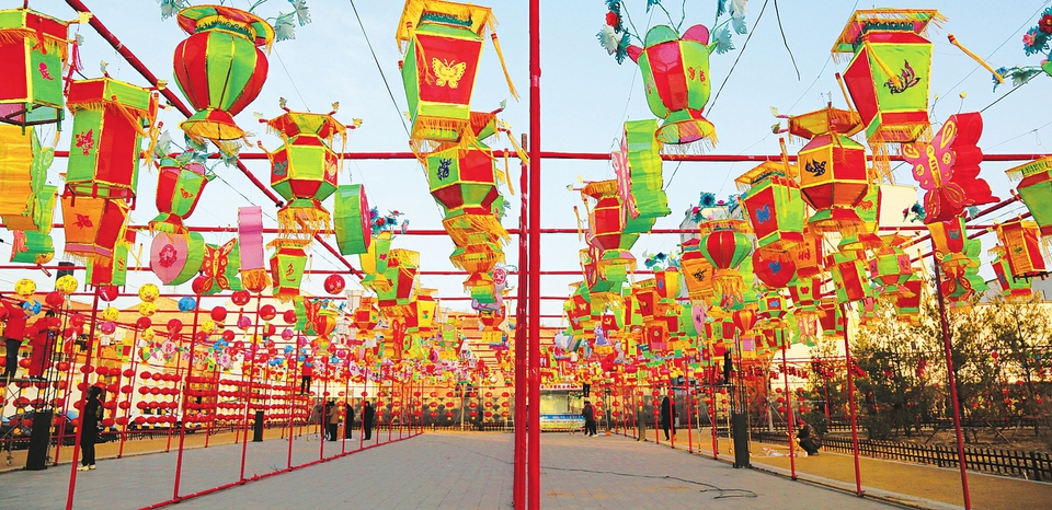“自北宋建村以來,村里就有做花燈迎新年的傳統(tǒng)。相傳至今,上至80歲老人,下到20歲出頭青年,村里一多半人都有做花燈的手藝?!倍骨f村村民霍書應(yīng)邊指揮大家掛花燈邊說。
