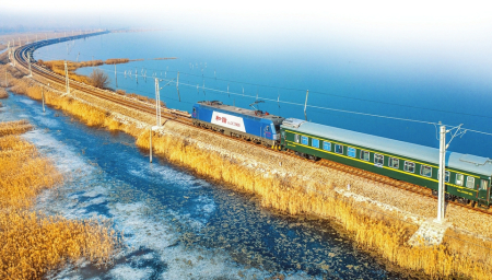 火車緩緩出站,一路上,城市街景、田野風光依次入場,隨著“快看窗外!”一聲驚呼,火車便駛進了一望無際的水中,兩側茫茫,恍然間讓人以為是行駛在了海面上。