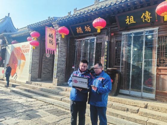 技術人員在忻州古城測試網(wǎng)絡運行情況