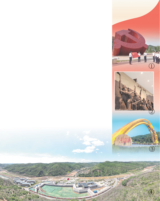 圖①:參觀學(xué)習(xí)團(tuán)隊(duì)在南泥灣黨徽廣場(chǎng)重溫入黨誓詞。祁小軍攝(人民視覺)