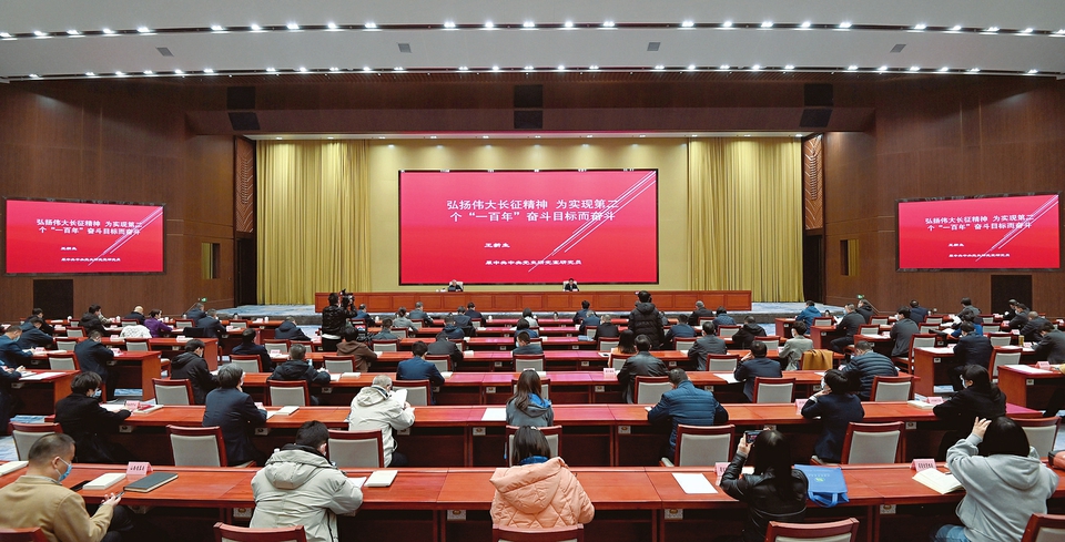3月23日,中國(guó)共產(chǎn)黨人精神譜系系列宣講第三場(chǎng)長(zhǎng)征精神專題報(bào)告會(huì)現(xiàn)場(chǎng)。本報(bào)記者史曉波攝 本報(bào)訊3月23日,省直工委舉辦中國(guó)共產(chǎn)黨人精神譜系系列宣講第三場(chǎng)長(zhǎng)征精神專題報(bào)告會(huì)。省直各單位機(jī)關(guān)黨委書記、省委機(jī)關(guān)各部委部分黨員干部、省直工委機(jī)關(guān)全體黨員干部聆聽報(bào)告。 報(bào)告會(huì)以《弘揚(yáng)偉大長(zhǎng)征精神為實(shí)現(xiàn)第二個(gè)“一百年”宏偉目標(biāo)而奮斗》為主題,邀請(qǐng)?jiān)泄仓醒朦h史研究室副巡視員、研究員王新生作專題輔導(dǎo),全面、系統(tǒng)、深刻地闡釋了長(zhǎng)征精神的鑄就形成、本質(zhì)內(nèi)涵和時(shí)代價(jià)值。報(bào)告會(huì)現(xiàn)場(chǎng)反響熱烈,聆聽報(bào)告的黨員干部紛紛表示,報(bào)告內(nèi)涵豐富、論證全面、闡述深刻、條理清晰、觀點(diǎn)鮮明,是一次生動(dòng)的黨性輔導(dǎo),這必將激勵(lì)我們?cè)谛碌拈L(zhǎng)征路上,埋頭苦干、勇毅前行,用自己的實(shí)際行動(dòng)奮進(jìn)新征程、建功新時(shí)代,走好新的趕考之路。 省住建廳機(jī)關(guān)黨委專職副書記王小飛表示,偉大長(zhǎng)征精神集中詮釋了中國(guó)共產(chǎn)黨人不斷攻堅(jiān)克難、從勝利走向勝利的紅色基因,在全方位推動(dòng)高質(zhì)量發(fā)展的新征程上,全省住建行業(yè)將弘揚(yáng)偉大長(zhǎng)征精神、賡續(xù)紅色血脈,以優(yōu)異成績(jī)迎接黨的二十大勝利召開。 “長(zhǎng)征的勝利,是中國(guó)共產(chǎn)黨人理想的勝利,是中國(guó)共產(chǎn)黨人信念的勝利。”認(rèn)真聆聽了報(bào)告會(huì)的省文物局機(jī)關(guān)黨委專職副書記馬勝深有感觸地說,作為一名文物戰(zhàn)線上的黨務(wù)工作者,要保護(hù)好我省的紅色資源和革命文物,運(yùn)用好紅色資源,講好黨的故事、革命的故事、英雄的故事,走好新時(shí)代長(zhǎng)征路。 省供銷社機(jī)關(guān)黨委一級(jí)主任科員李婧表示,偉大長(zhǎng)征精神是先輩留給我們的寶貴財(cái)富,這種革命理想高于天的精神,深深地激勵(lì)著我們青年干部要敢于擔(dān)當(dāng),想盡一切辦法攻堅(jiān)克難。作為一名青年干部,應(yīng)該主動(dòng)服務(wù)鄉(xiāng)村振興、參與農(nóng)業(yè)現(xiàn)代化建設(shè)、促進(jìn)農(nóng)民增收致富,推動(dòng)供銷社更好地成為黨和政府聯(lián)系農(nóng)民群眾的橋梁和紐帶,在新時(shí)代的長(zhǎng)征之路上書寫青春不悔,讓青春熠熠發(fā)光。 省直工委號(hào)召,全省廣大黨員干部要學(xué)習(xí)長(zhǎng)征精神所堅(jiān)守的理想信念,用信念之光照亮新的征程,不斷補(bǔ)足“精神之鈣”、筑牢信仰之基,增強(qiáng)“四個(gè)意識(shí)”,堅(jiān)定“四個(gè)自信”,做到“兩個(gè)維護(hù)”,不斷取得新的偉大勝利;學(xué)習(xí)長(zhǎng)征精神所蘊(yùn)含的堅(jiān)定意志和堅(jiān)強(qiáng)決心,用艱苦奮斗、創(chuàng)新超越之光照亮新的征程,持續(xù)發(fā)揮我黨開拓創(chuàng)新、攻堅(jiān)克難的精神優(yōu)勢(shì),以“紅軍不怕遠(yuǎn)征難”的英雄氣概,不斷推進(jìn)馬克思主義中國(guó)化、時(shí)代化,在中國(guó)特色社會(huì)主義新的征程中闖關(guān)奪隘、建功立業(yè);學(xué)習(xí)長(zhǎng)征精神所體現(xiàn)的團(tuán)結(jié)守紀(jì)和人民情懷,用團(tuán)結(jié)之光照亮新的征程,凝氣鑄魂、凝心聚力,繼續(xù)把革命前輩開創(chuàng)的偉大事業(yè)推向前進(jìn)。 省直工委要求,站在機(jī)關(guān)黨的建設(shè)新的歷史起點(diǎn),省直機(jī)關(guān)廣大黨員干部應(yīng)接續(xù)傳承好長(zhǎng)征精神,堅(jiān)持深入學(xué)習(xí)貫徹習(xí)近平新時(shí)代中國(guó)特色社會(huì)主義思想,以昂揚(yáng)拼搏的精神狀態(tài),站好踐行“兩個(gè)維護(hù)”的排頭兵;堅(jiān)持鞏固拓展黨史學(xué)習(xí)教育成果,以接續(xù)奮斗、勇毅前行的奮進(jìn)姿態(tài),做好踐行“三個(gè)表率”的先鋒隊(duì);堅(jiān)持圍繞中心、建設(shè)隊(duì)伍、服務(wù)群眾的職責(zé)定位,當(dāng)好踐行機(jī)關(guān)黨建高質(zhì)量發(fā)展的領(lǐng)頭雁,不斷從勝利走向新的勝利,以實(shí)際行動(dòng)迎接黨的二十大勝利召開。(閆書敏 于樂) (責(zé)任編輯:梁艷) |