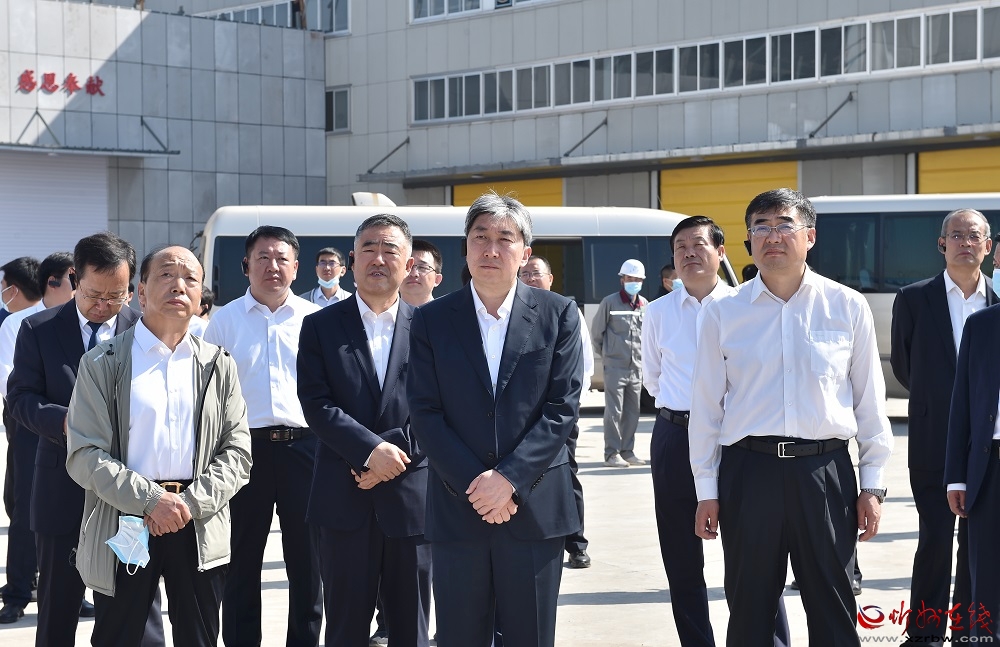 在山西宏厚建筑科技有限公司觀摩檢查建筑固廢回收利用制水穩(wěn)層拌合料及混凝土加工生產(chǎn)線項(xiàng)目、鋼結(jié)構(gòu)裝配式建筑生產(chǎn)線項(xiàng)目建設(shè)情況。馮曉磊 攝