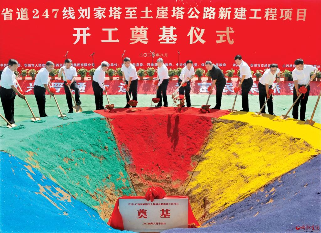 開(kāi)工奠基儀式現(xiàn)場(chǎng)。范濤 攝 8月14日,備受各界關(guān)注的省道247線(xiàn)劉家塔至土崖塔公路新建工程項(xiàng)目,在河曲縣坪頭村K0+000處正式奠基開(kāi)工。 市委書(shū)記朱曉東宣布項(xiàng)目開(kāi)工,省交通運(yùn)輸廳黨組書(shū)記、廳長(zhǎng)郭丙福,市委副書(shū)記、市長(zhǎng)李建國(guó),山西交控集團(tuán)黨委副書(shū)記、副董事長(zhǎng)、總經(jīng)理溫全貴分別講話(huà)。山西路橋集團(tuán)黨委書(shū)記、董事長(zhǎng)、總經(jīng)理郭聰林介紹項(xiàng)目情況。省交通運(yùn)輸廳一級(jí)巡視員郝玉柱,市委常委、秘書(shū)長(zhǎng)溫建軍,市政府秘書(shū)長(zhǎng)張艮生,山西交控、山西路橋等單位及市直相關(guān)單位負(fù)責(zé)人共同為項(xiàng)目開(kāi)工培土奠基。市政府黨組成員孟宏斌主持開(kāi)工儀式。路橋河保項(xiàng)目公司、設(shè)計(jì)單位、咨詢(xún)單位和沿線(xiàn)干部群眾等共同見(jiàn)證項(xiàng)目奠基開(kāi)工。 省道247線(xiàn)劉家塔至土崖塔公路新建工程是《山西省省道網(wǎng)規(guī)劃2021-2035年》中的規(guī)劃道路,是山西省“8縱16橫多聯(lián)”普通干線(xiàn)公路布局中第8縱的重要組成部分,已納入《山西省“十四五”現(xiàn)代綜合交通運(yùn)輸體系發(fā)展規(guī)劃》和2024年省級(jí)重點(diǎn)工程,也是山西省首個(gè)落地實(shí)施的公路交通基礎(chǔ)設(shè)施特許經(jīng)營(yíng)項(xiàng)目。