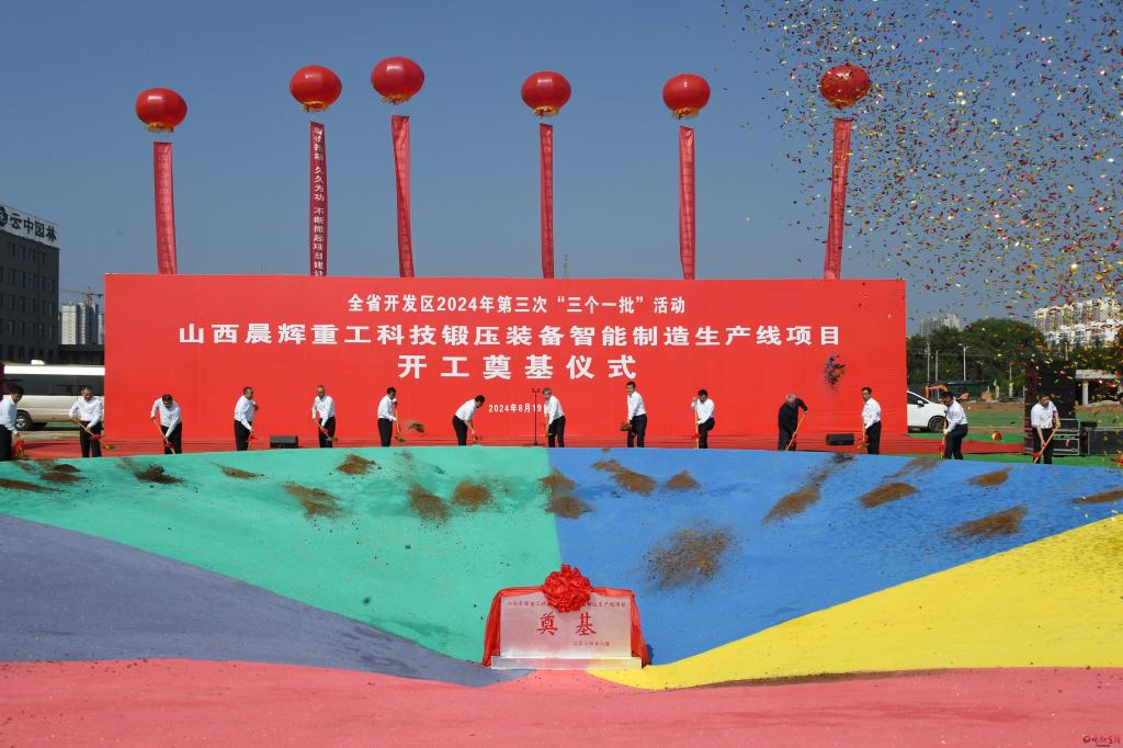 活動(dòng)期間,與會(huì)人員共同為“開(kāi)工一批”重點(diǎn)項(xiàng)目——山西晨輝重工科技鍛壓裝備智能制造生產(chǎn)線(xiàn)項(xiàng)目培土奠基,現(xiàn)場(chǎng)觀摩了“投產(chǎn)一批”重點(diǎn)項(xiàng)目——一道新能源(忻州)有限公司14GW光伏電池生產(chǎn)基地項(xiàng)目。(張曄)