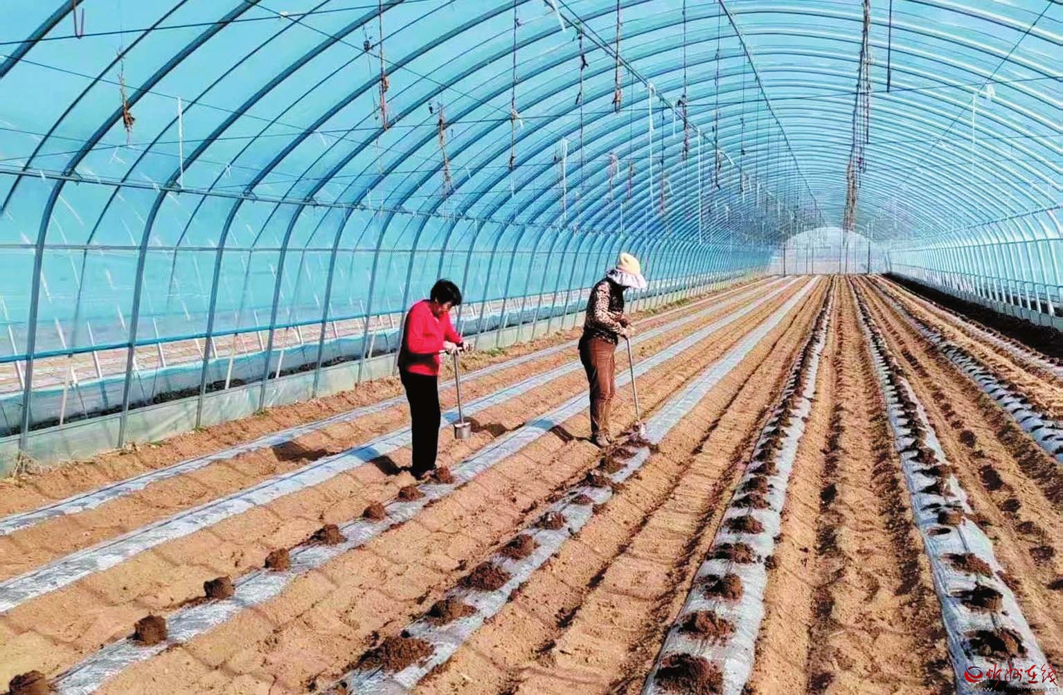 陽(yáng)春三月,春風(fēng)拂過雙乳山,西大王村的豆角產(chǎn)業(yè)園迎來豆角種植好時(shí)機(jī)。大棚里,六七個(gè)工人有序作業(yè),有的在點(diǎn)坑穴,有的在撒種、填土。一個(gè)大棚種好后,打開閥門,水流順著地上的滴管涌到坑穴,為剛?cè)鱿碌姆N子提供水分。據(jù)了解,西大王村采用“黨支部+集體經(jīng)濟(jì)合作社+農(nóng)戶”的發(fā)展模式,既為集體增收,又讓村民受益。今年,豆角種植園區(qū)一共有13個(gè)大棚,占地約40畝。為了搶抓農(nóng)時(shí),提前上市,賣個(gè)好價(jià)格,此次播種雇了許多村民幫忙,播種大約需要半個(gè)月時(shí)間才能完成。