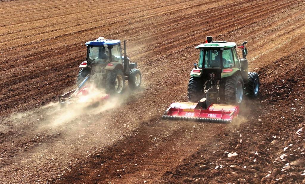 原平市王家莊鄉(xiāng)東泥河村的農(nóng)田里,搭載北斗導航系統(tǒng)的大型自動駕駛拖拉機正牽引著施肥鋪滴灌一體起壟機,緊張有序地進行開溝、起壟、施肥作業(yè),同時完成滴灌帶鋪設工作。(樊晶璟攝)