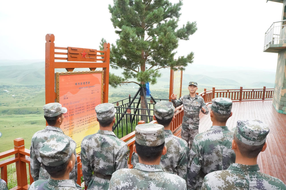 2021年8月9日,陸軍某旅三角山邊防連官兵在“相思樹(shù)”下學(xué)習(xí)李相恩的英雄事跡。新華社發(fā)(孫路 攝)