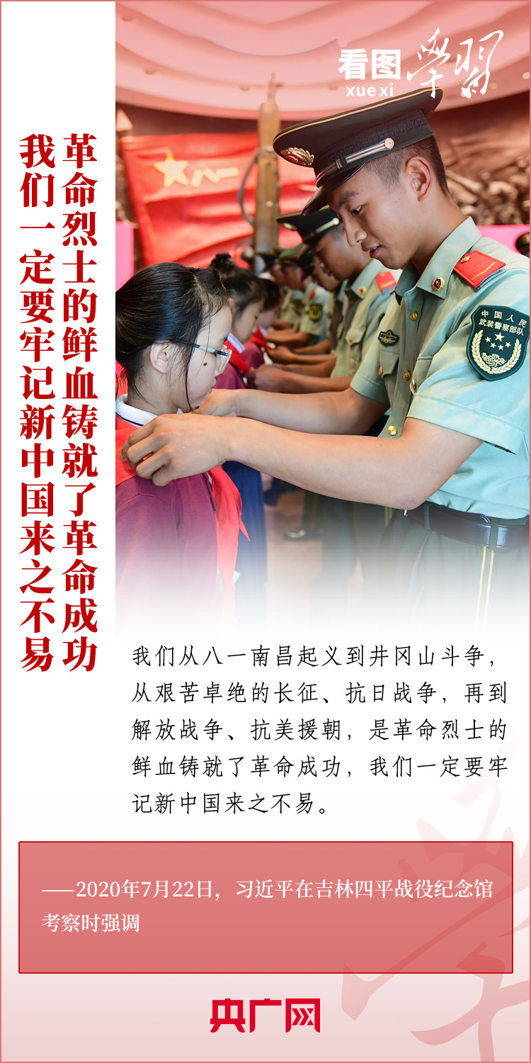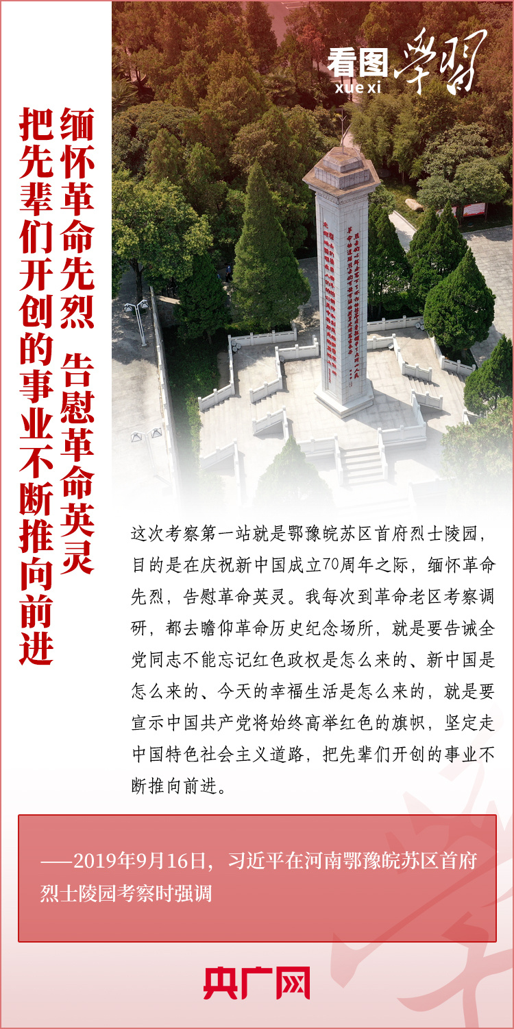 緬懷革命前輩,告慰先烈英靈。黨的十八大以來,習近平總書記多次在重大活動、赴地方調(diào)研時,或深情追憶革命前輩、英雄烈士,或向革命紀念場館禮敬鮮花、關(guān)心看望英烈親屬。總書記勉勵大家要繼承革命先烈遺志,把他們流血犧牲打下的紅色江山守護好、建設好,以實現(xiàn)中華民族偉大復興來告慰革命前輩和先烈。